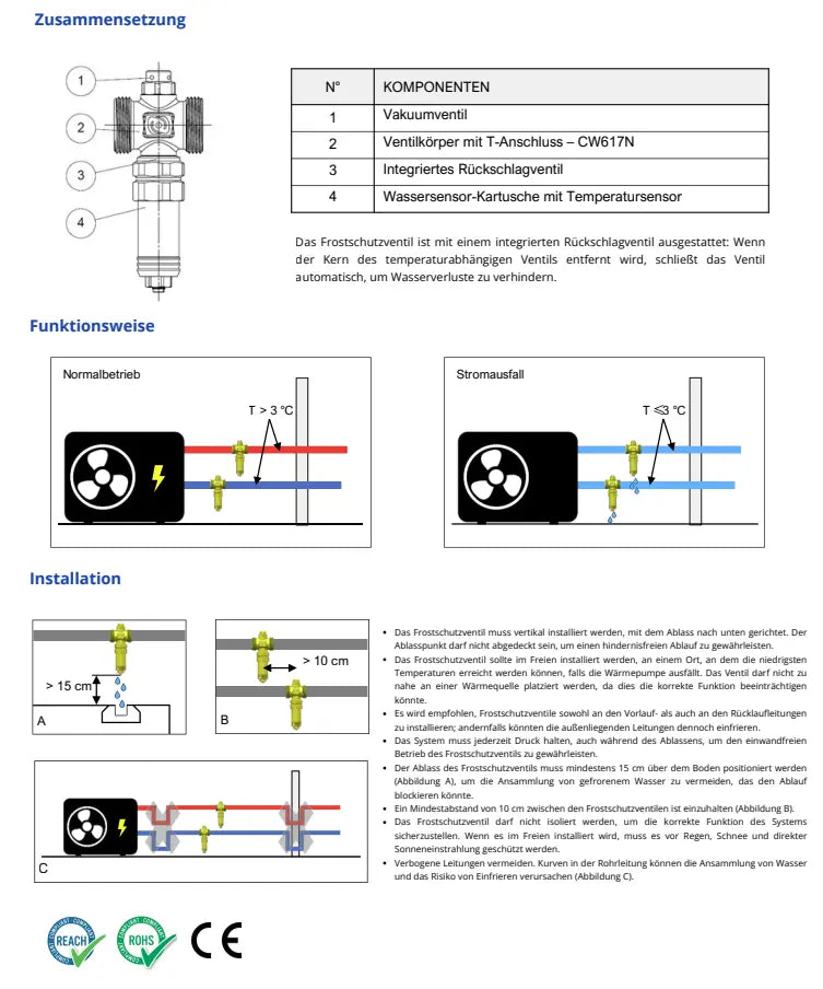 Frostschutzventil 1 1/4" AG / DN32 Frostschutz für Wärmepumpen, selbstöffnend